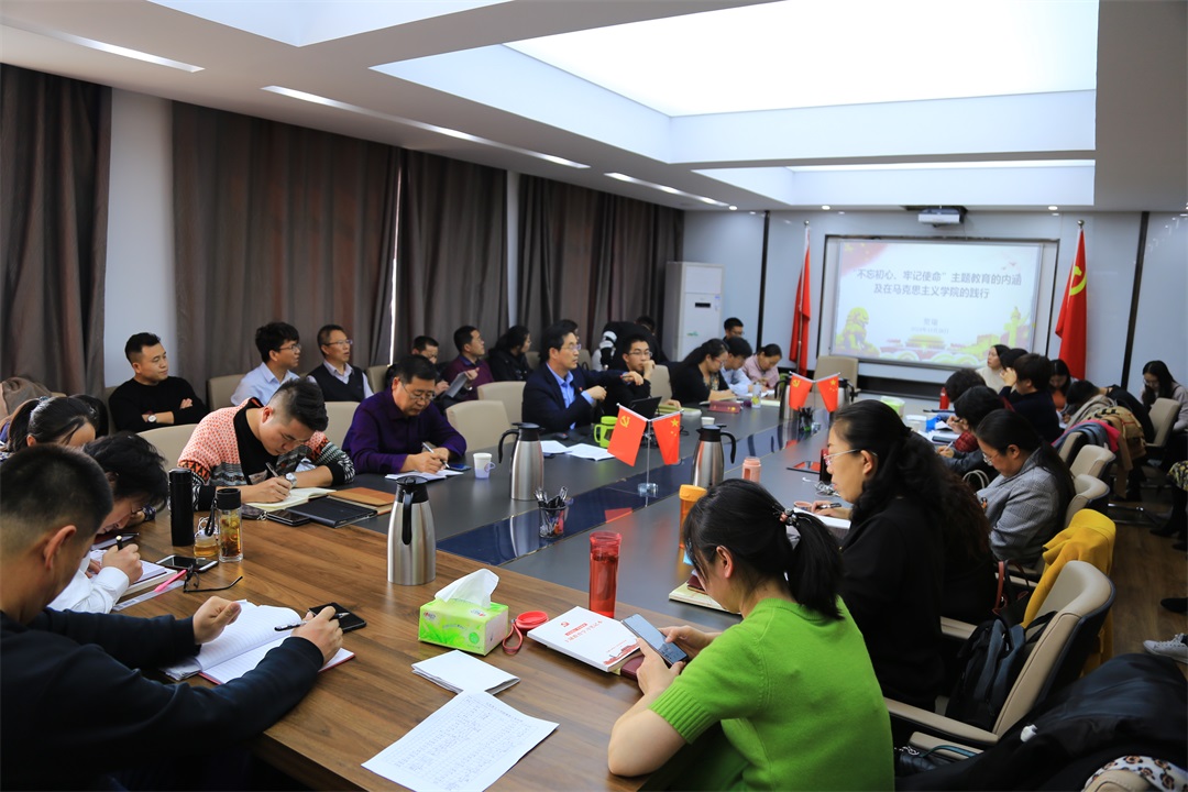 10月28日下午,在金年金字招牌诚信至上507会议室,党总支书记贺瑞以“不忘初心、牢记使命主题教育的内涵及在金年金字招牌诚信至上的践行”为题,为学院师生讲授“不忘初心、牢记使命”主题教育专题党课。校第五主题教育指导组周绍渊同志到会指导。