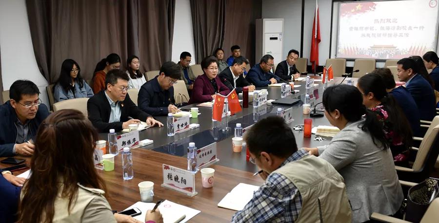 10月12日,我校主题教育领导小组组长、党委书记黄雅丽,主题教育领导小组成员、副校长张海峰,主题教育领导小组成员、党委委员、宣传部部长张宝成、组织部部长褚亚申深入金年金官网调研指导工作。相关部门负责同志陪同调研。
