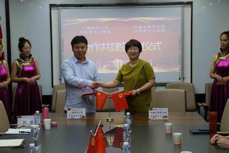 2019年6月21日上午,金年金官网在行政楼509会议室隆重举行"金年金字招牌诚信至上与上海师范大学金年金字招牌诚信至上合作共建签约仪式。"上海师范大学金年金字招牌诚信至上院长张志丹教授、思修教研室主任苏令银教授、毛中特教研室马立政博士和我校人事处处长白喜文、科技处处长王志强、教务处副处长乌兰格日乐、研究生院副院长满达以及金年金官网领导班子、相关老师和全体研究生出席了会议。院长李春晖主持了仪式。
