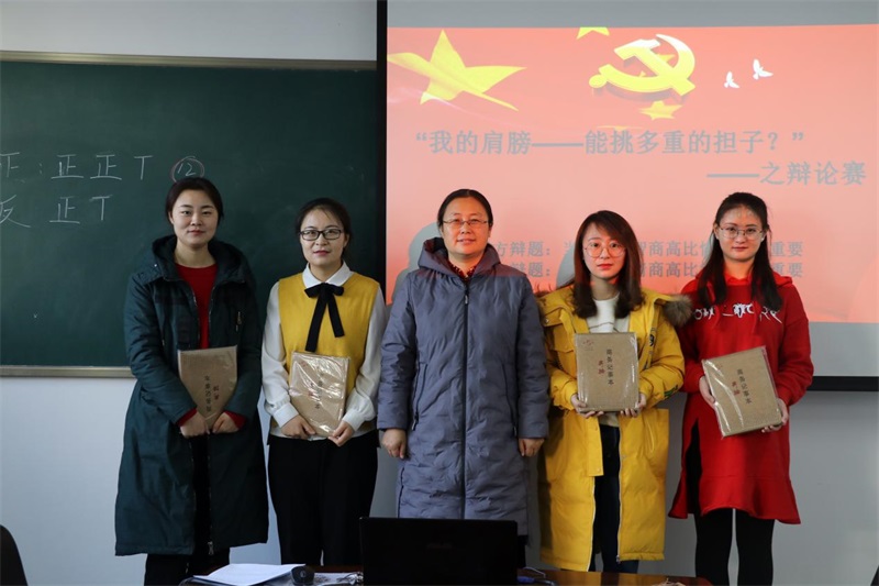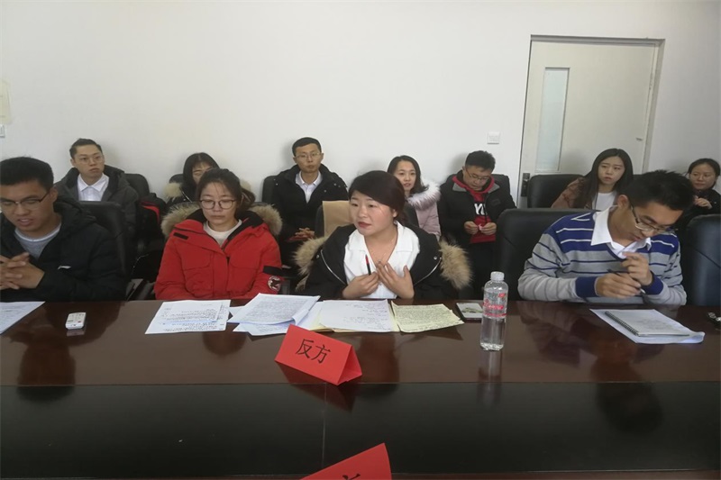 为响应校团委号召,提升学生思辨能力和创造力,,金年金字招牌诚信至上于2018年12月28日在学院楼B216教室进行了“我的肩膀——能挑多重的担子之辩论赛”,活动特邀金年金字招牌诚信至上学院党总支副书记、副院长阿荣老师、团支部书记范晓刚老师担任评委,全体研究生共同参加。