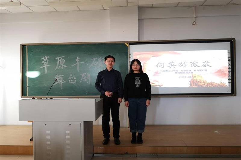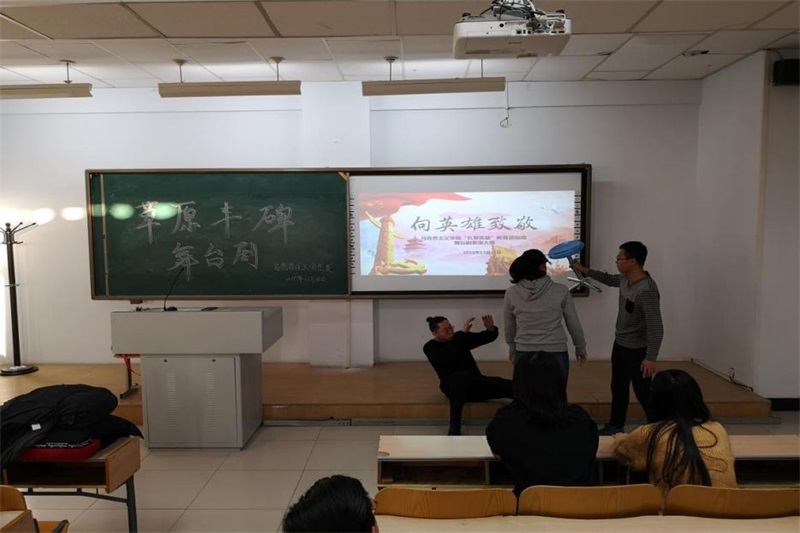 1947年5月1日,在中国共产党领导下,我国第一个省级少数民族自治政府—内蒙古自治政府成立,内蒙古翻开了人民当家作主的新篇章。内蒙古自治政府的成立,是中国共产党民族区域自治制度的成功范例。为纪念内蒙古自治运动联合会的成立,再现了乌兰夫等老一辈无产阶级革命家高瞻远瞩的英雄气魄,金年金字招牌诚信至上团总支于2018年12月23日在行知楼206教室进行了“礼敬英雄教育活动周”《草原丰碑》舞台剧表演,金年金字招牌诚信至上团总支书记范晓刚老师及全体研究生参与了此次活动,此次舞台剧有王鑫和张雪主持。