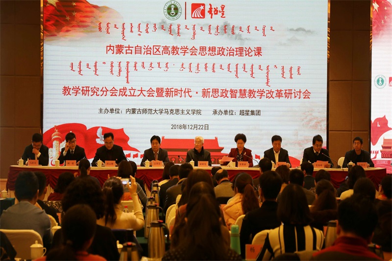 随后,出席大会的各位领导共同为内蒙古自治区高教学会思想政治理论课教学研究分会成立揭牌,共同见证智慧马院平台、“内师马上学习”公众号开通。