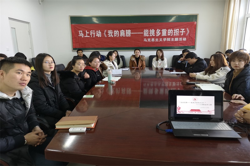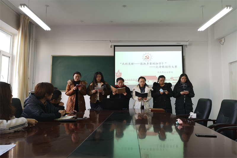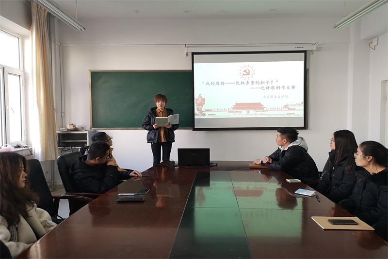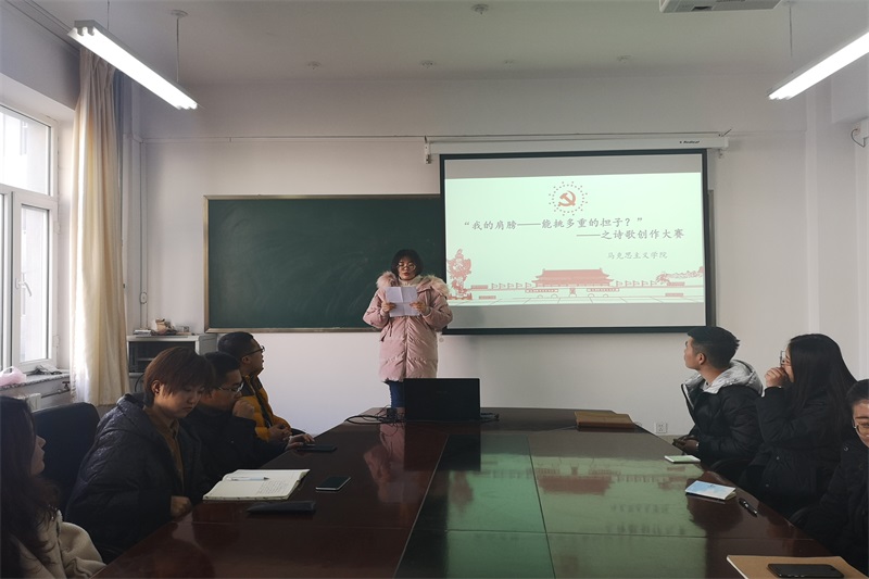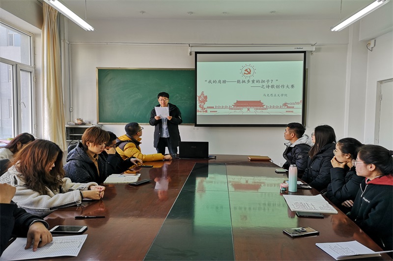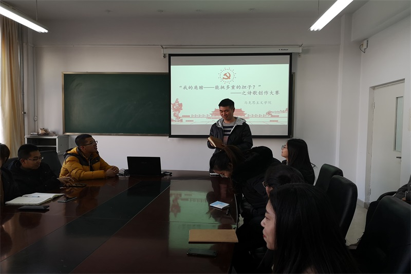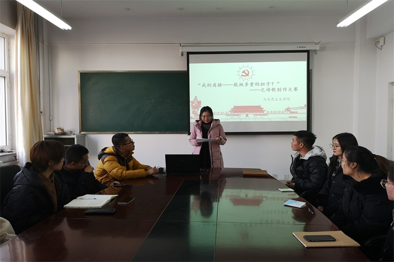 2018年12月18日中午,金年金官网在盛乐校区学院楼B216举办“诗歌创作”活动。团支部书记范晓刚老师及研一、研二全体研究生参加了本次活动。