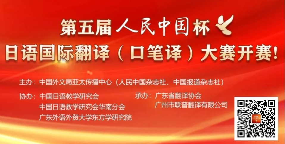 第五届人民中国杯日语国际翻译(口笔译)大赛是由中国外文局亚太传播中心(人民中国杂志社、中国报道杂志社)和教育部日语专业虚拟教研室联合主办,由中国日语教学研究会、中国日语教学研究会华南分会及广东外语外贸大学东方学研究院协办,广东省翻译协会及广州市联普翻译有限公司承办。大赛本着“以赛促学,以赛促教,以赛促创”的初衷,致力于为两国翻译爱好者搭建交流的桥梁,为促进中日翻译事业的发展贡献力量。