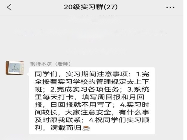为切实保障师范生教育实践工作质量,学院为实习师范生配备了8位专业指导教师进行分组指导,分别是刘爱华、钢特木尔、顾媛媛、齐玉梅、朝格图、杨瑞雪、金莲、乌义汗。指导过程中,教师们认真负责,细心安排,每周定期召开实习经验分享会,听取学生实习工作和生活情况汇报,尽力为实习生解决实践工作中遇到的问题。刘爱华副院长在工作会中多次强调,实习生在实践工作期间要遵守金年金字招牌诚信至上与实习基地学校相关规章制度,时刻做到“学而不厌,诲人不倦”,充分展示金年金字招牌诚信至上马院学子的风采。她还嘱咐实习生们要强化安全意识,珍惜实践机会,在实践中不断加强学习,提升自我,以优秀教师的标准要求自己,圆满完成此次教育实践任务。