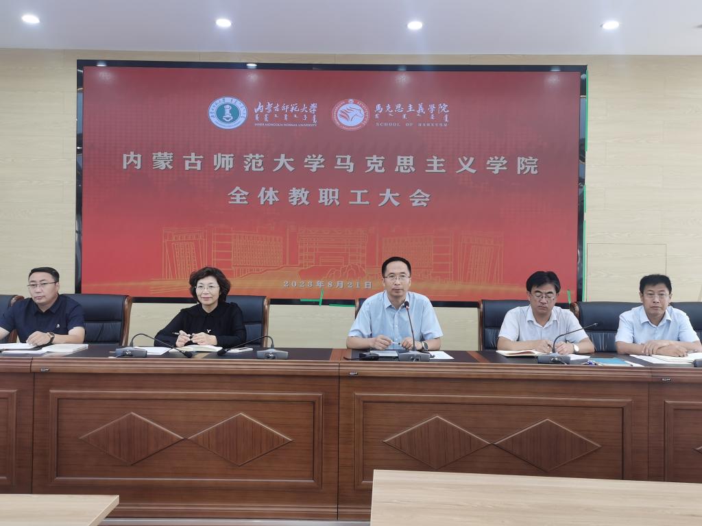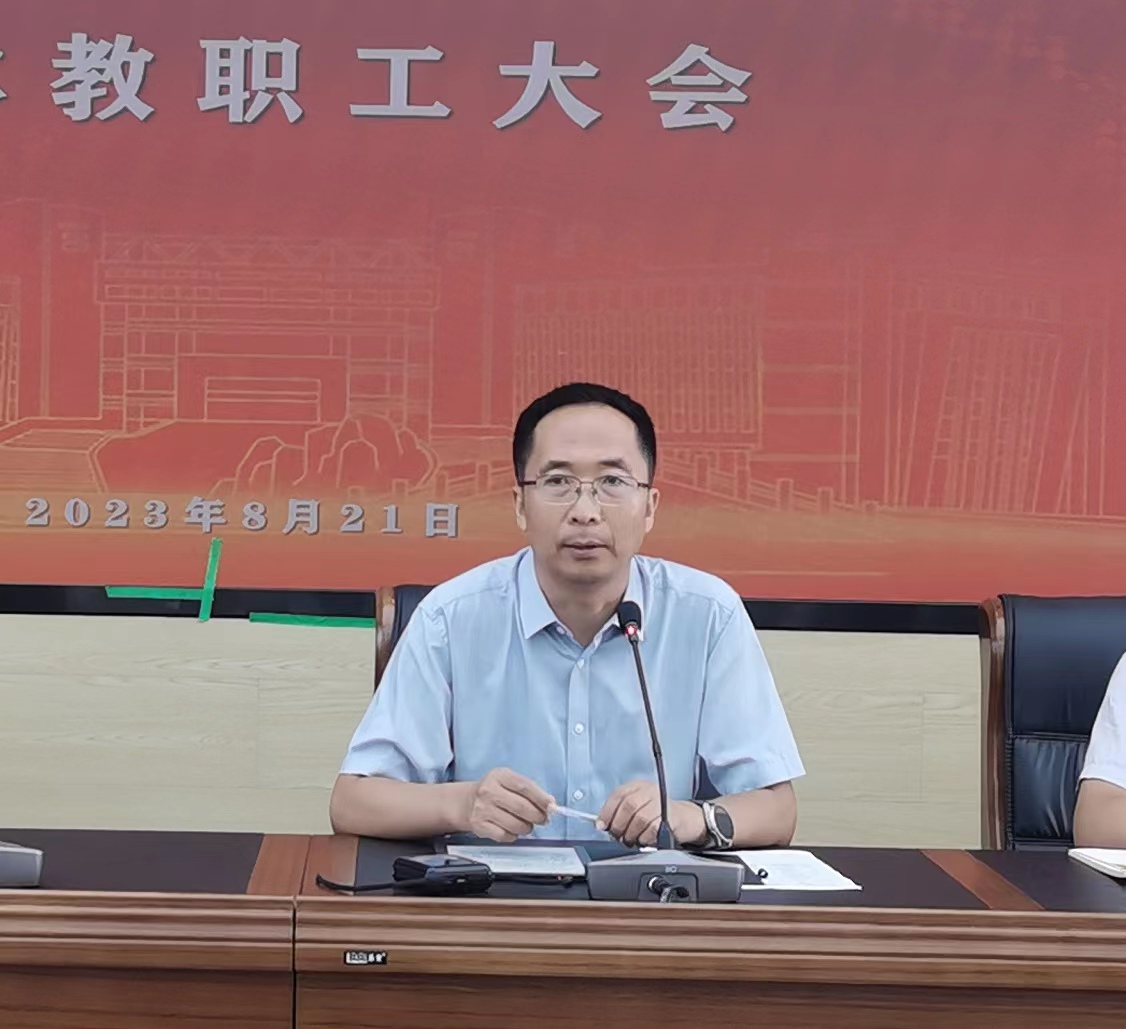 8月21日下午,金年金官网在勤政楼三楼会议室召开本学期第一次全体教职工大会,安排部署下半年学院重点工作和学院近期工作。学院党政领导班子出席会议,全体教职工参加。会议由党委副书记、院长齐义军主持。