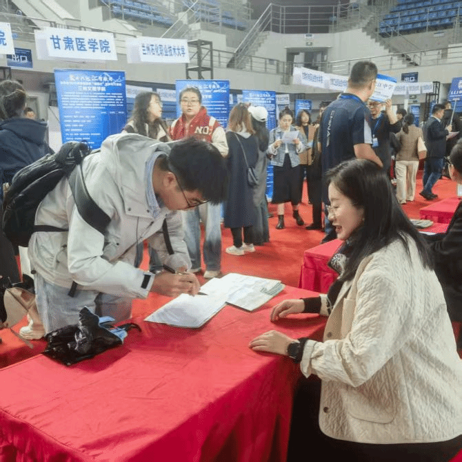 招聘会现场,王丹书记和李卉青老师向相关专业博士生详细介绍了学院的发展规划、人才培养机制、科研平台保障等,吸引了众多应聘者关注。