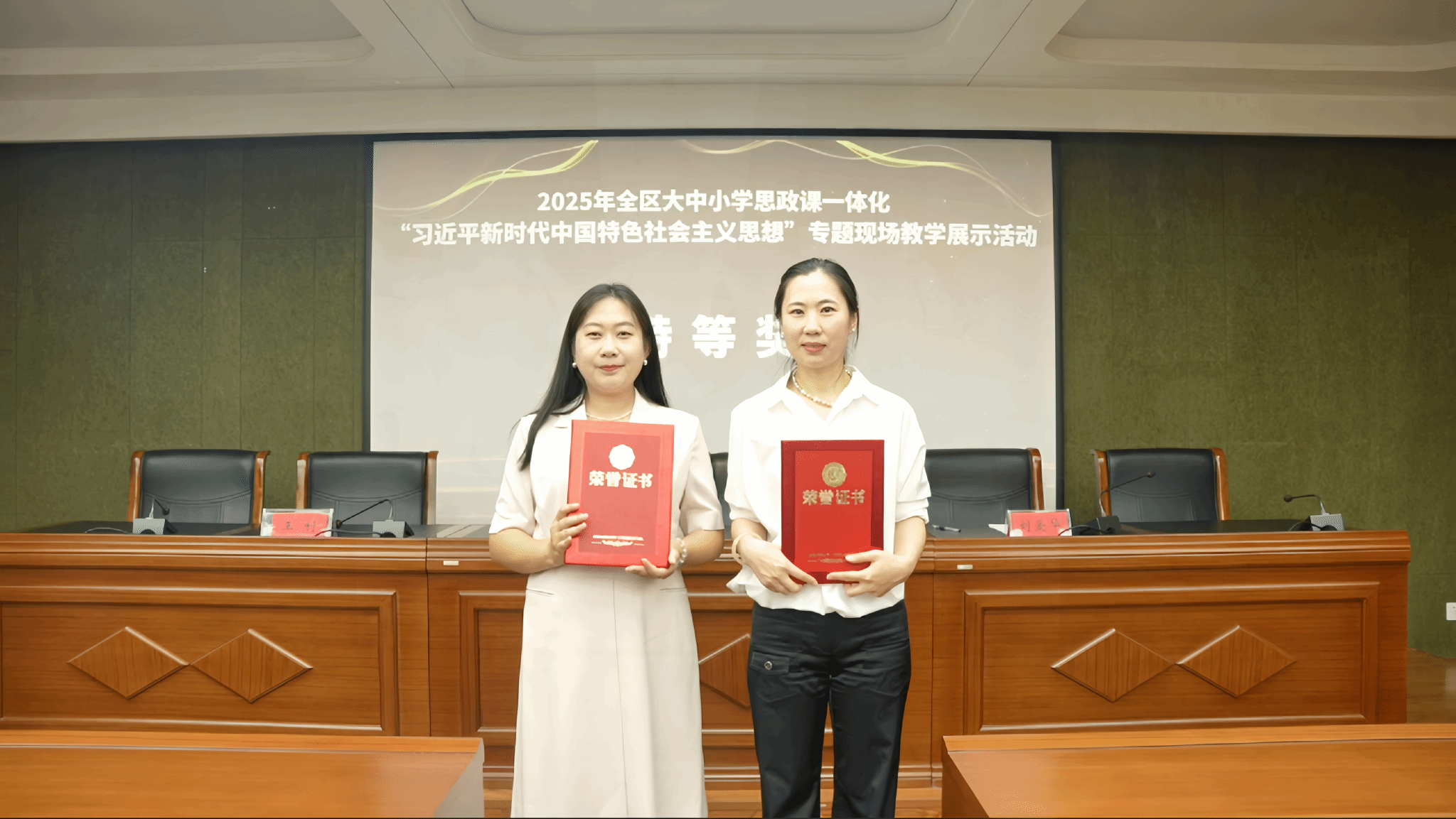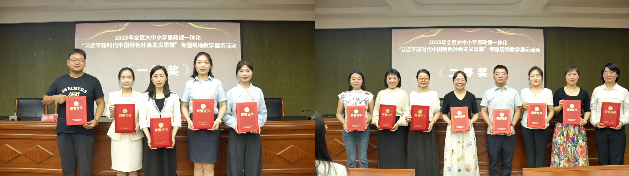 本次活动由各自治区级大中小学思政课一体化共同体牵头单位及“手拉手”盟市教育(教体局)审核推荐的24支教学团队的110名大中小学思政课教师参赛。各参赛团队教师以高度的政治责任感和专业水准,紧扣习近平新时代中国特色社会主义思想,通过小学、初中、高中、大学四个学段的梯度衔接,生动展现了内蒙古思政课一体化建设的丰硕成果。展示活动共评出特等奖二个、一等奖5个、二等奖8个。金年金官网刘爱华老师牵头组建的参赛团队凭借出色的学段衔接设计和理论阐释深度,荣获赛事最高奖项特等奖,充分展现了金年金官网在大中小学思政课一体化建设中的示范引领作用。该团队由金年金字招牌诚信至上图雅、包头市第二中学李德凤、兴安盟扎旗音德尔一中屈晓宇、呼和浩特市第三十中学白雅楠四位老师组成。