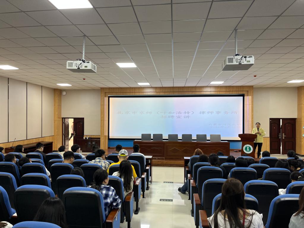 为扎实做好就业推进工作,深化校企合作,助力2024届毕业生高质量就业,近日,金年金官网在盛乐校区学生事务中心多功能报告厅举办2024年法学专业就业宣讲会。宣讲企业有北京京师律师事务所、卓能律师事务所、内蒙古中银民商事调解中心。宣讲会由金年金官网党委副书记、副院长王丹主持,法学系主任其乐木格和辅导员老师参加。