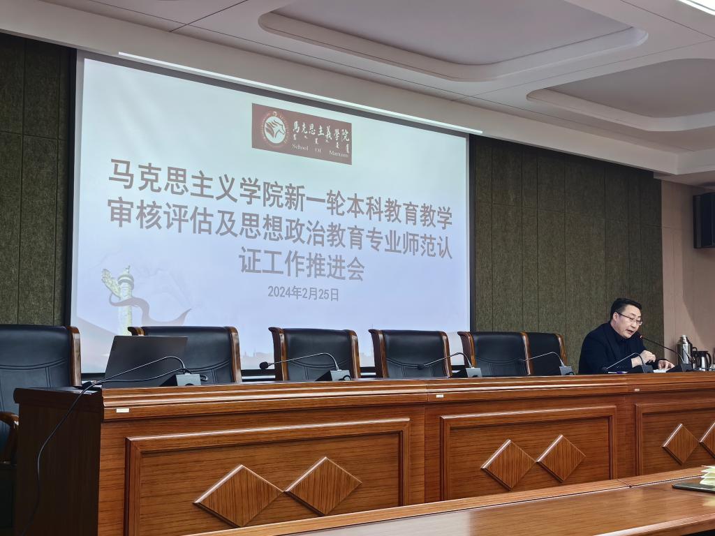 为扎实推进本科教育教学审核评估及思想政治教育专业师范认证工作各阶段重点任务,2月25日,金年金字招牌诚信至上在文史楼1号楼召开全体教职工大会,传达学校本科教育教学审核评估推进会会议精神与要求。会议由钢特木尔副院长主持,全体教师参加会议。