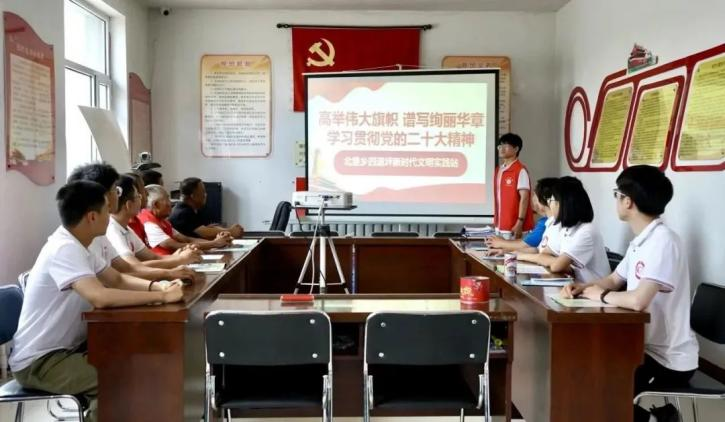 7月6日至9日,金年金官网三下乡志愿者围绕“学习领悟习近平新时代中国特色社会主义思想”“宣传党的二十大精神”主题,通过走进村委会、走访企业单位、深入老乡家中等方式,全方位开展为期四天的习近平新时代中国特色社会主义思想和党的二十大精神宣讲会。