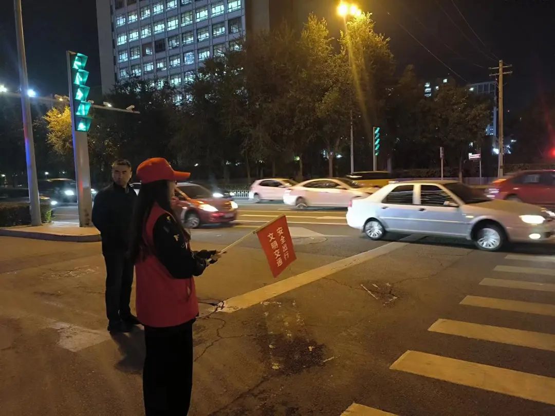 他们勤劳奉献的身影闪耀在夜幕中的青城,一抹温馨的红色也温暖了来往的行人。