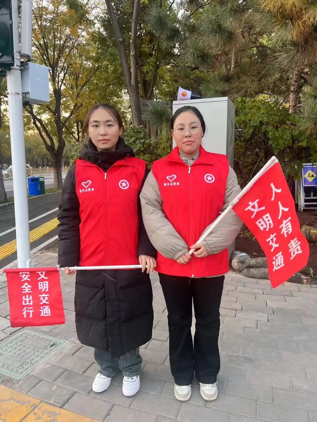 秋冬交替之际,金年金字招牌诚信至上的志愿者们在早、晚高峰时段,按照规定时间提前到岗,轮流在乌兰察布东路上岗执勤。执勤中,志愿者手持交通引导旗,身穿红马甲,头戴小红帽,协助交警对行人及非机动车辆闯红灯、越线等待、走机动车道等不文明行为进行劝导纠正;向过往行人发出文明出行倡议,倡导大家自觉遵守交通规则,文明出行;帮助有需要的老人、小孩安全过马路;为问路的行人指路等。