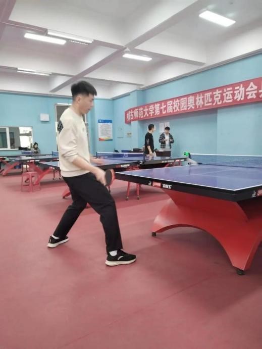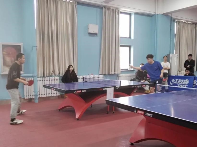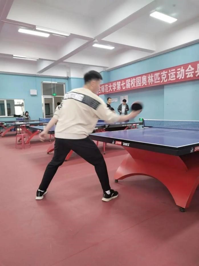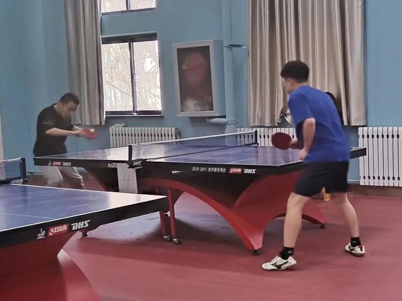 一声哨声响起,参赛选手们快速进入状态,你来我往,你推我挡,各自灵活地挥舞着球拍,动作行云流水,一时间打得难解难分,汗水滴落在地面上,球拍与乒乓球急速擦过发出的吱吱声,像是在为参赛选手们欢呼喝彩。