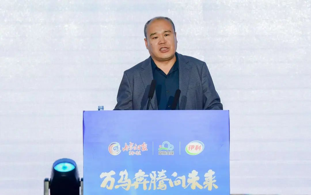 内蒙古社会科学院副院长、研究员双宝正在作题为《弘扬蒙古马精神,推进社会建设高质量发展,让老百姓过上更好的日子》的演讲。草原全媒记者王磊摄